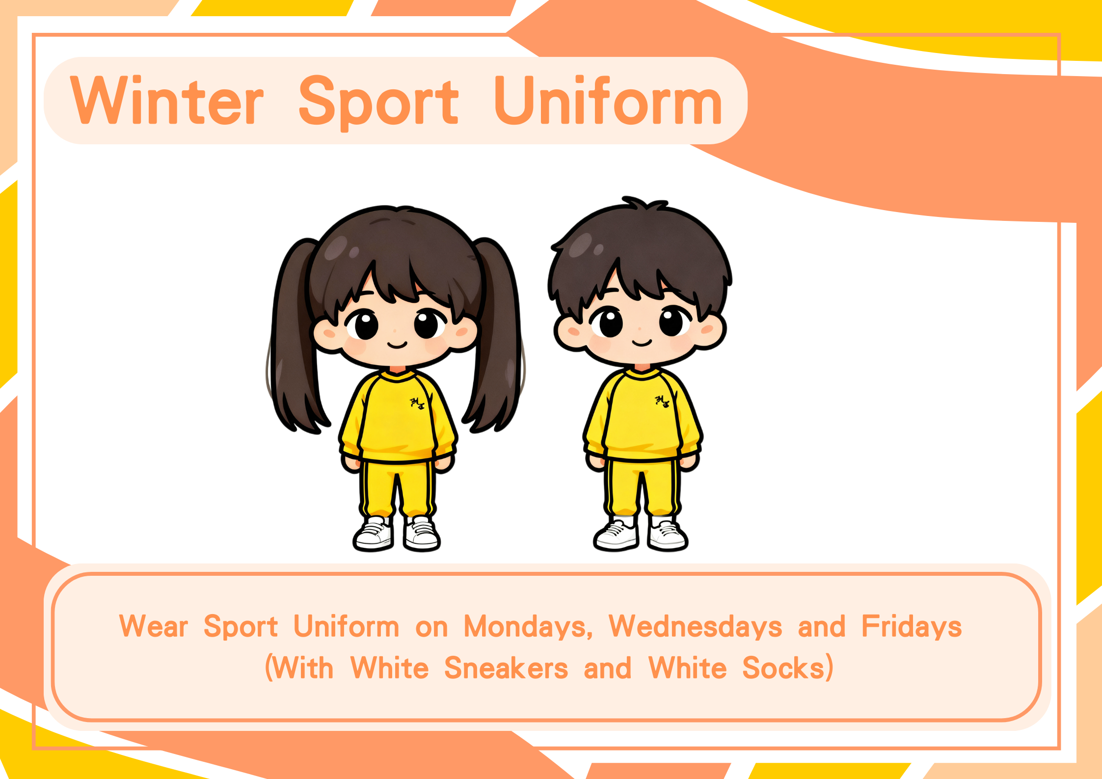 Students are required to wear sportswear, white sneakers and white socks on Mondays, Wednesdays and Fridays, while students are required to wear school uniforms, black leather shoes and white socks on Tuesdays and Thursdays. If parents need to purchase school uniforms, you can go to the school office to inquire.